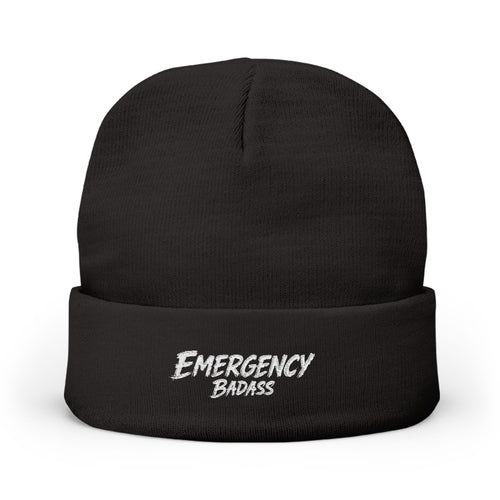 Embroidered 'Emergency Badass' Knit Beanie